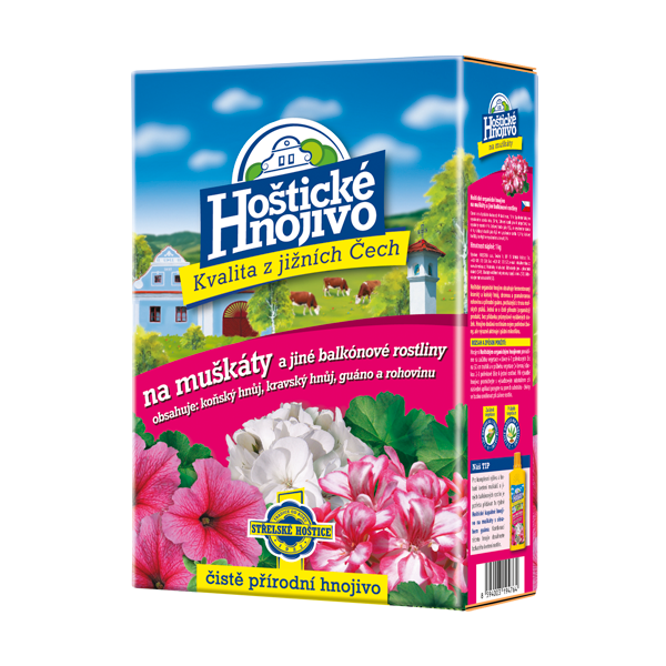 Hoštické organické hnojivo obsahuje fermentovaný kravský a koňský hnůj, drcenou a granulovanou rohovinu a přírodní guáno, pocházející z trusu mořských ptáků. Jedná se o čistě přírodní (organický) produkt, bez přídavku průmyslově vyráběných složek. Hnojivo dodává rostlinám nejen potřebné živiny, ale výrazně aktivuje i půdní mikroflóru. Pro další výživu rostlin doporučujeme použít kapalnou formu Hoštického hnojiva s guánem.